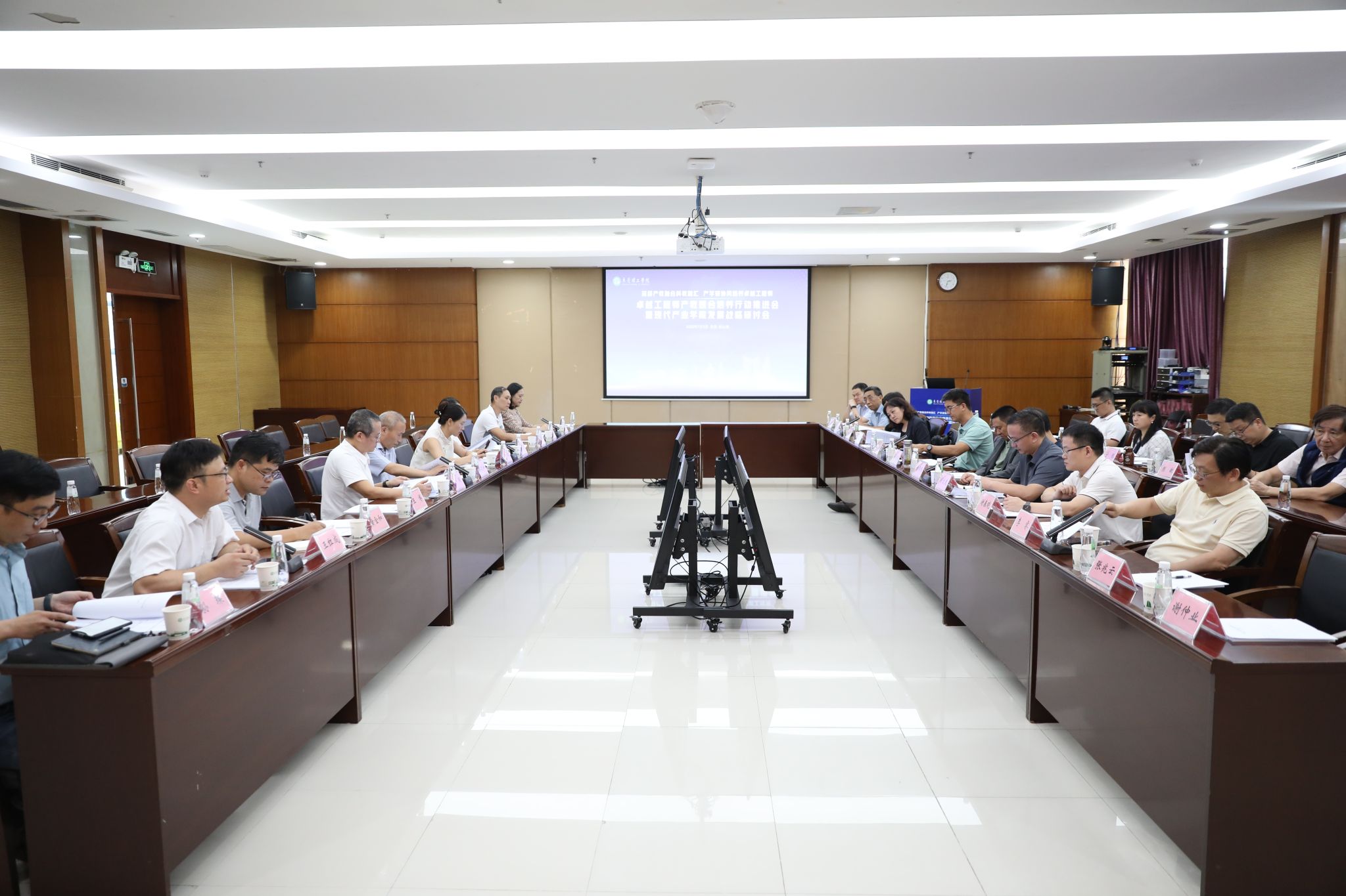 下午的现代产业学院建设研讨会上,学校相关现代产业学院对未来的发展定位、路径规划等建设思路进行了汇报。校外专家组和校内职能部门领导参加会议,现场问诊把脉、答疑解惑,并共同商讨了产业学院未来发展方向。