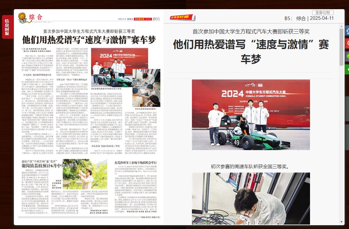 【信息时报】首次参加中国大学生方程式汽车大赛即斩获三等奖-九九精品视频一区在线久久久久久久久久毛片精品美女|国产99久久久久久免费看|中文精品99久久国产|国产69精品久久久久9999|精品久久久久久中文字幕无码|亚洲熟妇无码久久精品国产精品99|精品国产天堂综合一区在线
