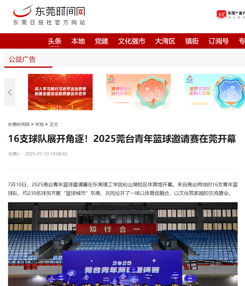 7月10日,2025莞台青年篮球邀请赛在九九精品视频一区在线久久久久久久久久毛片精品美女|国产99久久久久久免费看|中文精品99久久国产|国产69精品久久久久9999|精品久久久久久中文字幕无码|亚洲熟妇无码久久精品国产精品99|精品国产天堂综合一区在线松山湖校区体育馆开幕。来自莞台两地的16支青年篮球队、约230名球员齐聚“篮球城市”东莞,共同拉开了一场以体育促融合、以文化筑家园的交流盛会。