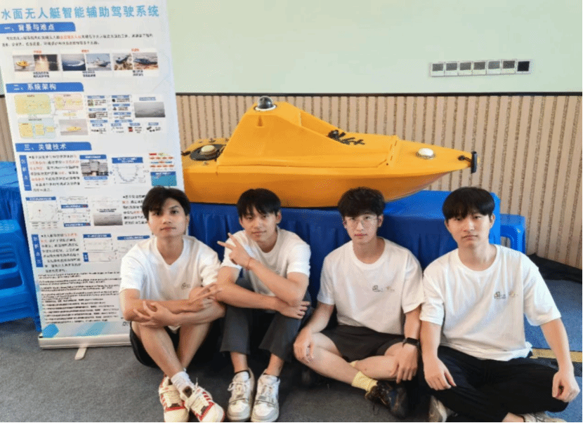 参赛作品水面无人艇智能辅助驾驶系统,有诸多亮眼创新设计,在面对复杂的水面光学干扰可以用视觉结合激光雷达更好识别港口信息,面对复杂海况克服风浪干扰完成路径规划、控制船体稳定,任务结束环节实现自主避障返港功能。搭载在无人艇上,可以完成无人艇集群出港、作业、返港全过程无人化的水上航行任务。
