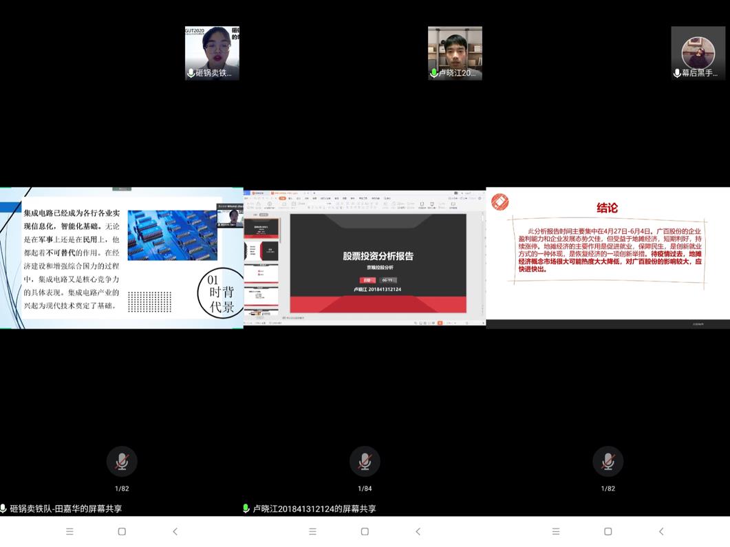 决赛采取的是股票分析报告会的形式,专业性更高,更直观地展现选手的实力,把模拟炒股比赛推向高潮。6月11日下午,第十五届科技学术节之大学生网上模拟证券投资竞赛股票分析报告会暨闭幕式于线上顺利进行。