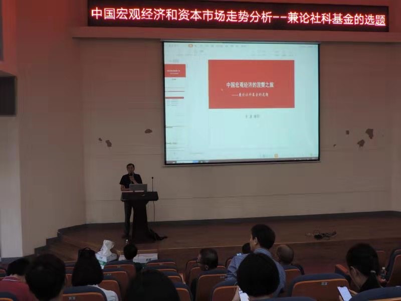 刘川教授对此次社科类学术会议的目的及意义作出了详细介绍。李湛教授就“中国宏观经济和资本市场走势分析--兼论社科基金的选题”进行了精彩分享,参加讲座的老师们就社科基金选题中的各种疑惑积极请教李湛教授,场面热烈,科研交流氛围浓厚,老师们表示受益匪浅。