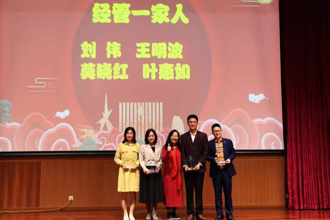 茶话会过程中对优秀校友、创新创业工作先进个人、教学之星、科研之星、服务之星、教学及科研工作先进单位等进行了表彰,肯定了他们一年来的努力,同时对今年离开经管学院到校内其它职能部门任职的同事颁发了“经管一家人”奖杯。