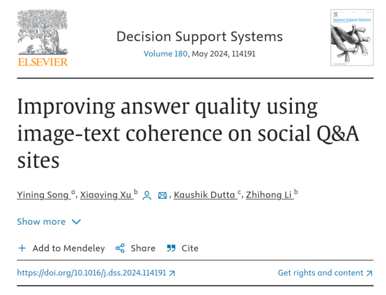 我校经济与管理学院宋忆宁老师团队最近在计算机科学TOP期刊《Decision Support Systems》上发表题为“Improving answer quality using image-text coherence on social Q&A sites”的论文,对上述问题进行了研究。
